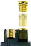 熱可塑性樹脂、熱硬化性樹脂に対応。拡張方式であるため、成形後圧入インサートの中では一番薄い肉厚で使用可能